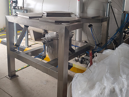 用電葫蘆或者叉車(chē)很容易將噸包輸送至拆包工位上;